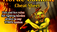 - July 27, 2021 by DrivenIntoDarkness#rpg, #ttrpg, #zine, #one-page, #roleplay, #role-play, #table-topA fun and fast universal ruleset for fighting hordes of foes in any TTRPG system. Use this ruleset to make your players feel heroic as their mow through throngs of foes. GMs can use these rules to kee... Continue reading